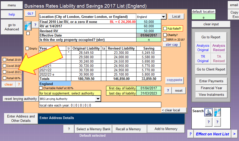 Posted onThe new release (version 8.3a) takes account of the new Retail Hospitality and Leisure reliefs announced in the Budget. There are now four options for “Retail” Selecting “Retail” will apply all Retail and Covid Reliefs As Retail Discount in 2019 was subject to State Aid limits, there is the option to select only the Covid […]