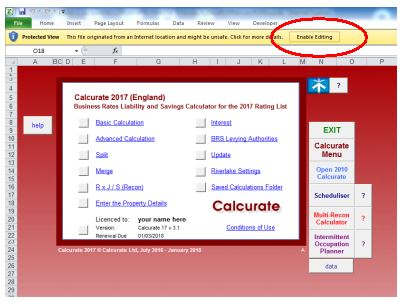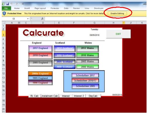 The Calcurate Menu should be used to open the required Calcurate calculator.